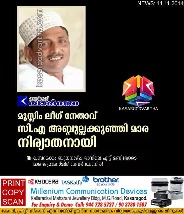Keywords : Chengala, Kasaragod, Obituary, Muslim-league, Leader, CA Abdulla Kuni Mara.