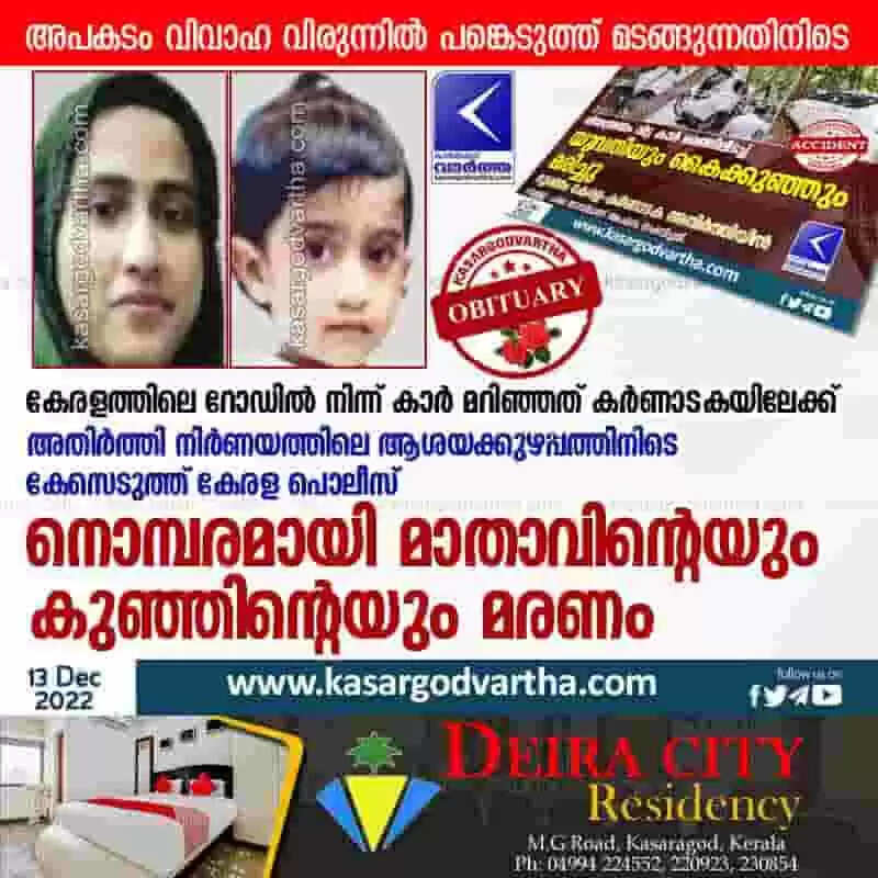 Accident | കേരളത്തിലെ റോഡില് നിന്ന് കാര് മറിഞ്ഞത് കര്ണാടകയിലേക്ക്; അതിര്ത്തി നിര്ണയത്തിലെ ആശയക്കുഴപ്പത്തിനിടെ കേസെടുത്ത് കേരള പൊലീസ്; നൊമ്പരമായി മാതാവിന്റെയും കുഞ്ഞിന്റെയും മരണം