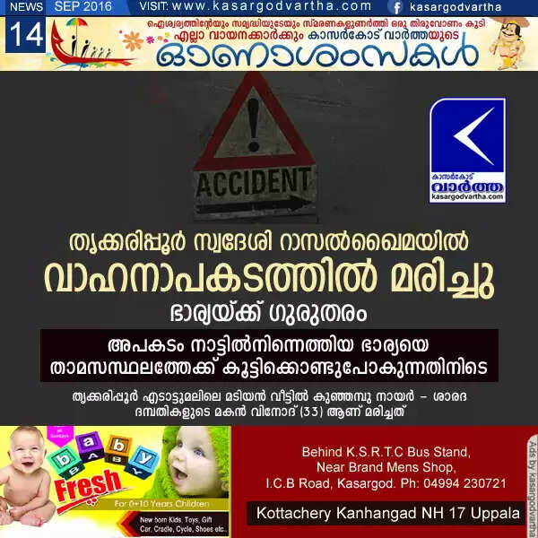 Keywords: Cheruvathur, Obituary, Kasaragod, Accident, Death, Cheruvathur native dies in accident