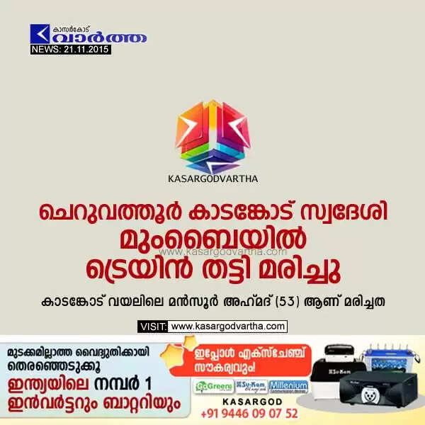 Keywords: Cheruvathur native dies in Mumabi, Mansoor Ahmad, Cheruvathur, Obituary, Kerala, Mumbai, Train Accident