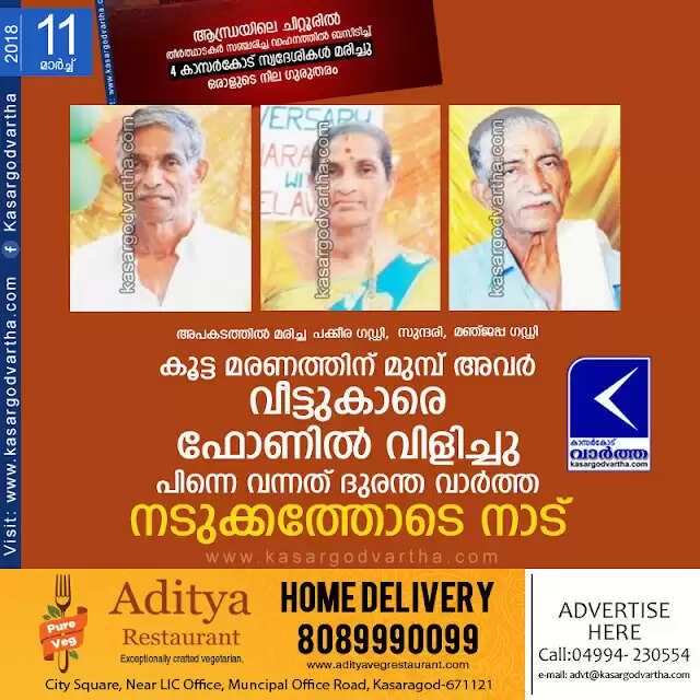 ആന്ധ്രയിലെ ചിറ്റൂരില് തീര്ത്ഥാടകര് സഞ്ചരിച്ച വാഹനത്തില് ബസിടിച്ച് 4 കാസര്കോട് സ്വദേശികള് മരിച്ചു, ഒരാളുടെ നില ഗുരുതരം
