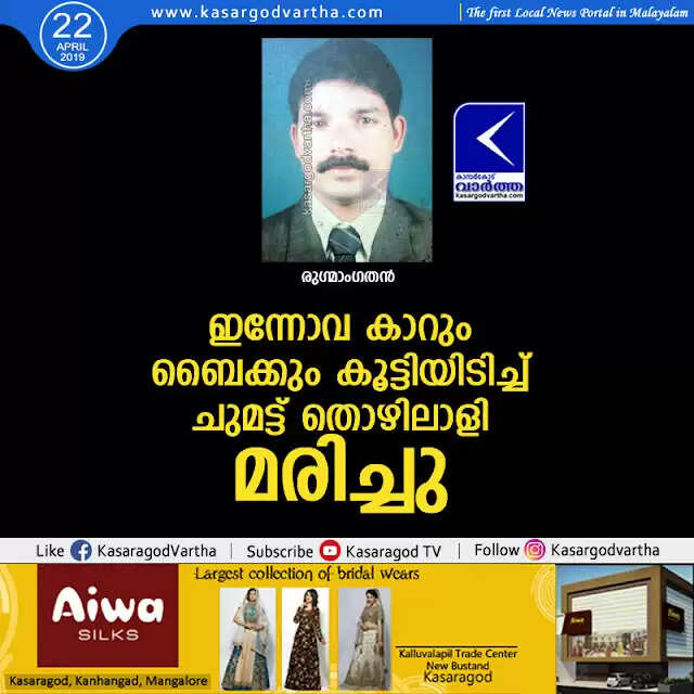 Keywords: Cheruvathur, Kasaragod, Accident, Bike-Accident, Obituary, Car-Accident, News, CITU activist dies in accident