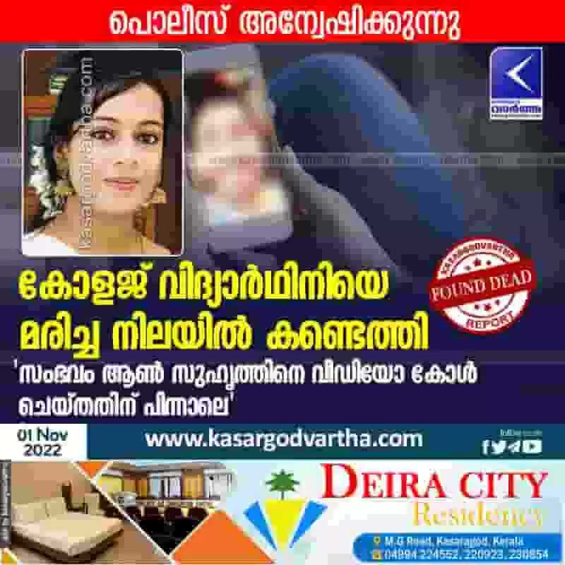 Keywords:  Latest-News, Kerala, Kasaragod, Top-Headlines, Kanhangad, Died, Obituary, Suicide, Died, Death, Investigation, College student found dead.