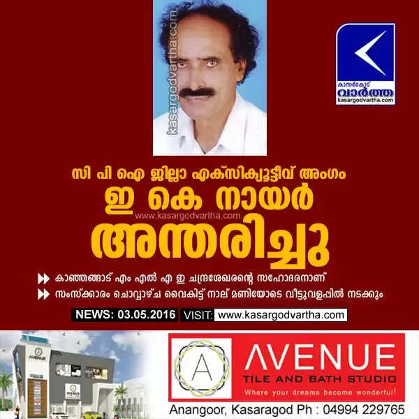 സി പി ഐ ജില്ലാ എക്സിക്യൂട്ടീവ് അംഗം ഇ കെ നായര് അന്തരിച്ചു
