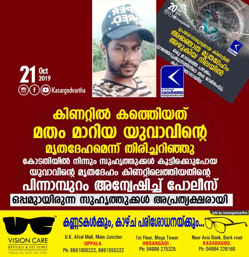 കിണറ്റില് കണ്ടെത്തിയത് മതം മാറിയ യുവാവിന്റെ മൃതദേഹമെന്ന് തിരിച്ചറിഞ്ഞു; കോടതിയില് നിന്നും സുഹൃത്തുക്കള് കൂട്ടിക്കൊണ്ടുപോയ യുവാവിന്റെ മൃതദേഹം കിണറ്റിലെത്തിയതിന്റെ പിന്നാമ്പുറം അന്വേഷിച്ച് പോലീസ്, ഒപ്പമുണ്ടായിരുന്ന സുഹൃത്തുക്കള് അപ്രത്യക്ഷരായി