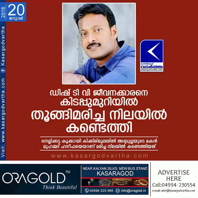Keywords: Badiyadukka, Kasaragod, Kerala, News, Hanged, Dish, TV, Hospital, Mother, Brothers, Family. Obituary, Death, Dish TV employee found dead hanged.