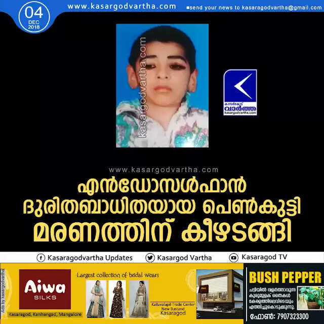 Keywords: Endosulfan; 11 year old died, Kasaragod, Obituary, News, Endosulfan-victim, Nafeesath Rafila.