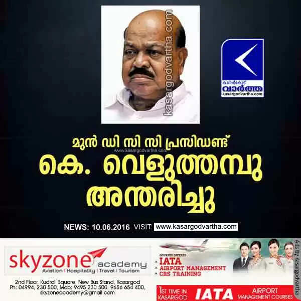 മുന് ഡി സി സി പ്രസിഡണ്ട് കെ വെളുത്തമ്പു അന്തരിച്ചു