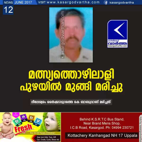 Keywords : Nileshwaram, Death, Obituary, Kasaragod, Fishermen, K Babu, Fisher man drowned to death.