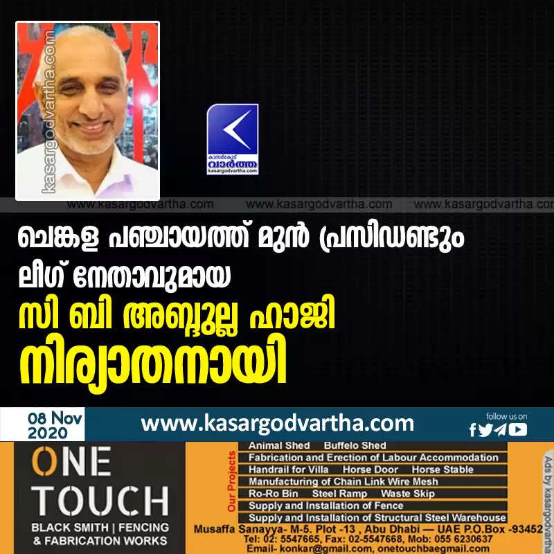 ചെങ്കള പഞ്ചായത്ത് മുന് പ്രസിഡണ്ടും ലീഗ് നേതാവുമായ സി ബി അബ്ദുല്ല ഹാജി നിര്യാതനായി