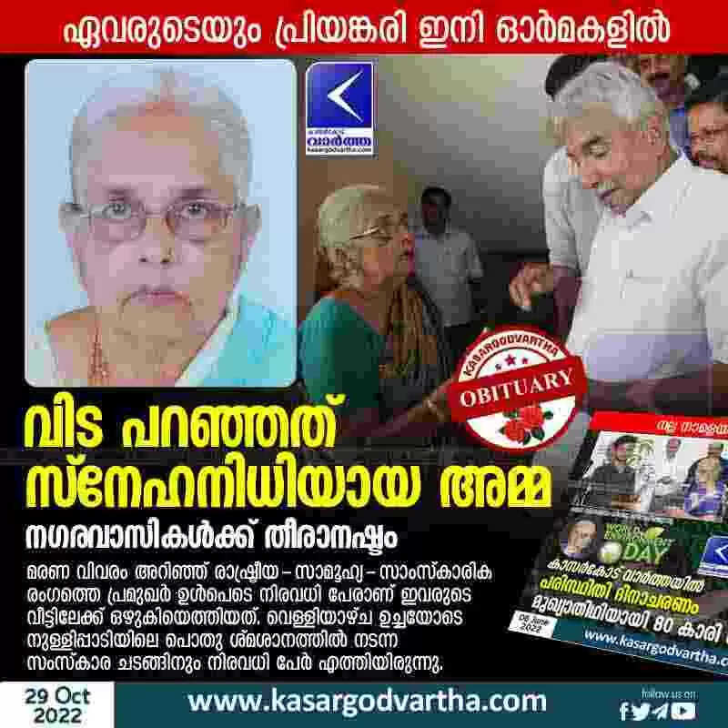 Keywords: Kasaragod, Kerala, News, Top-Headlines, Latest-News, Obituary, Death, Natives, Girija Bhai is no more.