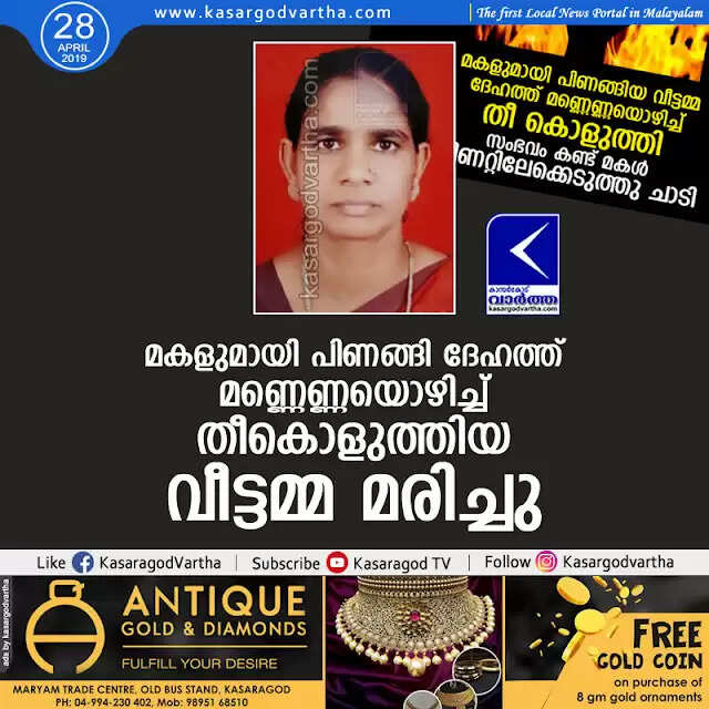 Keywords: Kasaragod, Kerala, news, Top-Headlines, Trikaripur, Death, Obituary, House wife died after burn injury