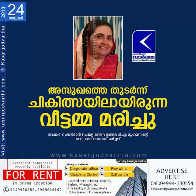 Keywords: Kasaragod, Kerala, news, Death, Obituary, House wife dies after illness