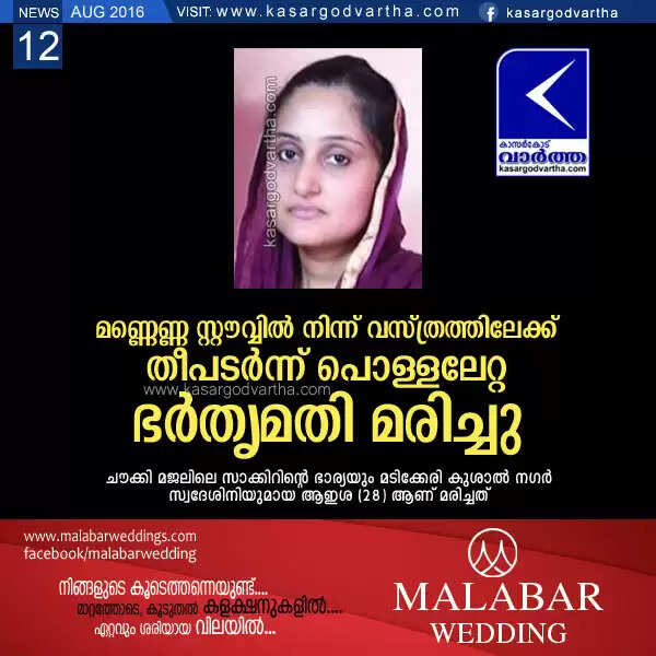 Keywords: Obituary, Housewife, Kasaragod, Kerala, Burn, Housewife dies after burning injury