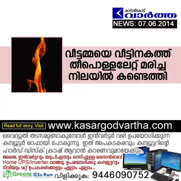 വീട്ടമ്മയെ വീട്ടിനകത്ത് തീപൊള്ളലേറ്റ് മരിച്ച നിലയില്‍ കണ്ടെത്തി