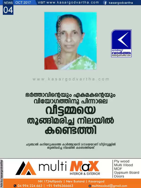 Keywords : Chattanchal, Suicide, Death, Obituary, House, Husband, Son, Kasaragod, News, Top-Headlines, Karthyayani.