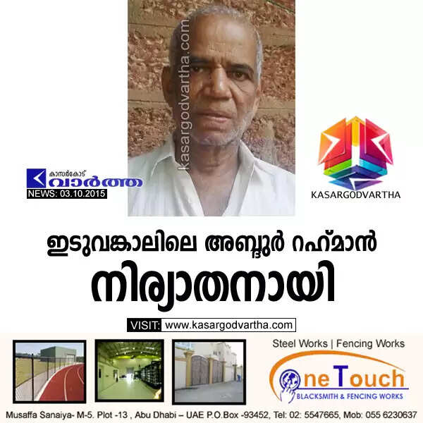 Keywords: Kasaragod, Kerala, Iduvangal, Iduvangal Abdul Rahman passes away