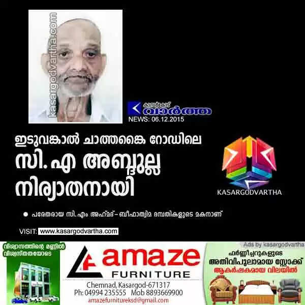 ഇടുവങ്കാല്‍ ചാത്തങ്കൈ റോഡിലെ സി.എ അബ്ദുല്ല നിര്യാതനായി