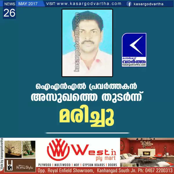 Keywords: Kasaragod, Chembarika, Treatment, Death, Obituary, INL Activist, Malabar cancer center, INL Activist passes away due to illness.