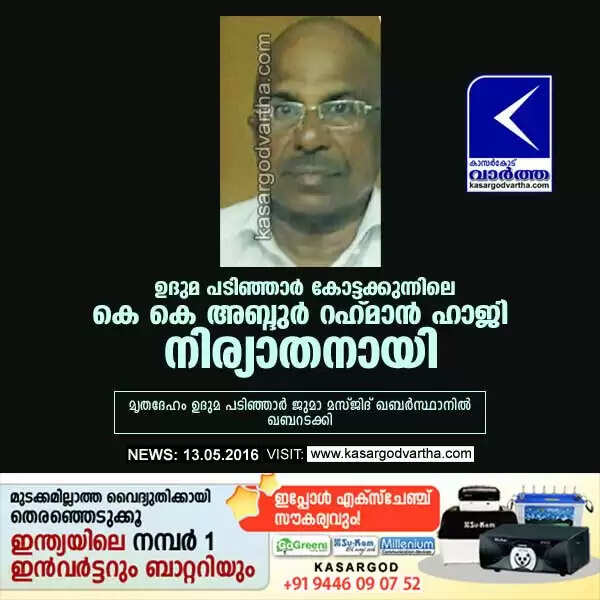 ഉദുമ പടിഞ്ഞാര്‍ കോട്ടക്കുന്നിലെ കെ കെ അബ്ദുര്‍ റഹ് മാന്‍ ഹാജി നിര്യാതനായി