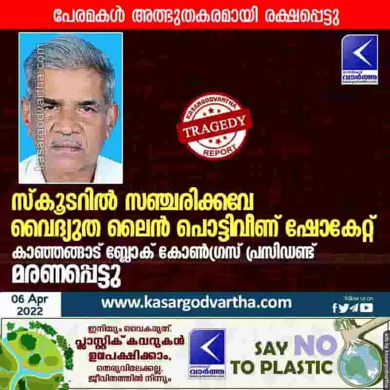 സ്‌കൂടറിൽ സഞ്ചരിക്കവേ വൈദ്യുത ലൈന്‍ പൊട്ടിവീണ് ഷോകേറ്റ് കാഞ്ഞങ്ങാട് ബ്ലോക് കോണ്‍ഗ്രസ് പ്രസിഡണ്ട് മരണപ്പെട്ടു; പേരമകൾ അത്ഭുതകരമായി രക്ഷപ്പെട്ടു