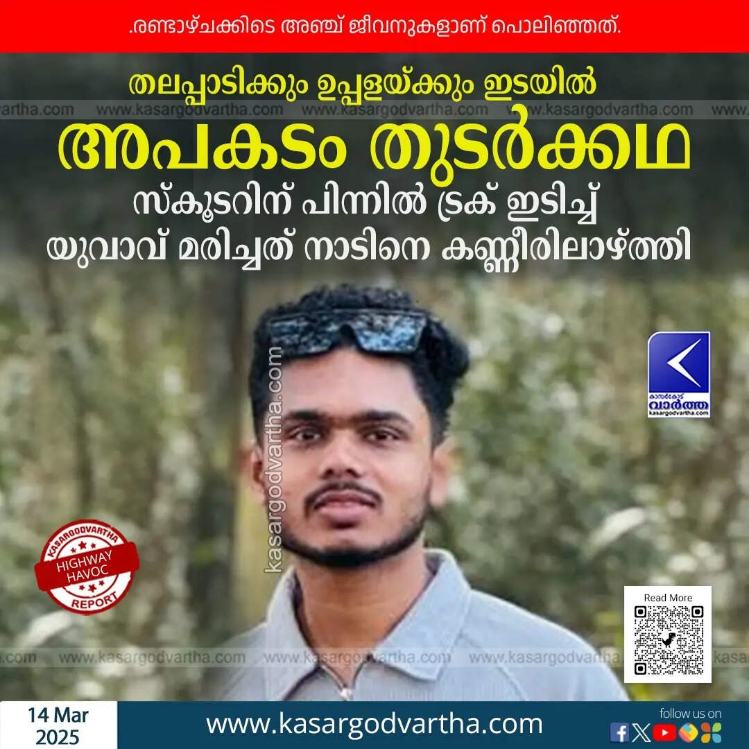 Highway Havoc | തലപ്പാടിക്കും ഉപ്പളയ്ക്കും ഇടയില് അപകടം തുടര്ക്കഥ; സ്കൂടറിന് പിന്നില് ട്രക് ഇടിച്ച് യുവാവ് മരിച്ചത് നാടിനെ കണ്ണീരിലാഴ്ത്തി
