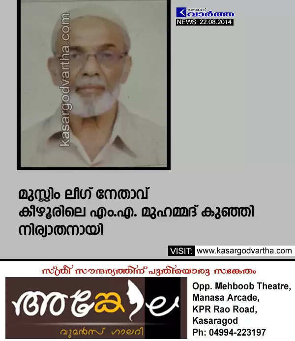 Keywords : Muslim league Leader, Kizhur, Kasaragod, Kerala, Obituary, Kizhur M.A. Muhammed Kunhi passes away.