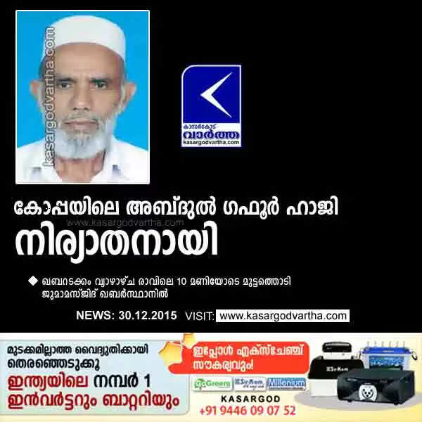 കോപ്പയിലെ അബ്ദുല് ഗഫൂര് ഹാജി നിര്യാതനായി
