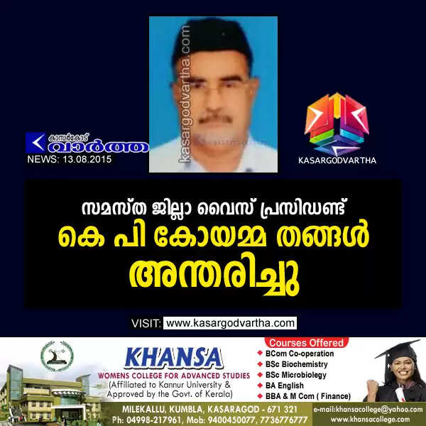 സമസ്ത ജില്ലാ വൈസ് പ്രസിഡണ്ട് കെ പി കോയമ്മ തങ്ങള്‍ അന്തരിച്ചു