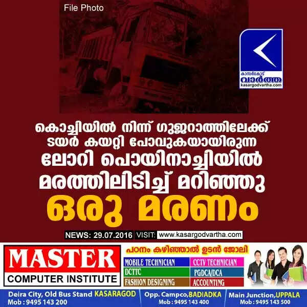 കൊച്ചിയില് നിന്ന് ഗുജറാത്തിലേക്ക് ടയര് കയറ്റി പോവുകയായിരുന്ന ലോറി പൊയിനാച്ചിയില് മരത്തിലിടിച്ച് മറിഞ്ഞു; ഒരു മരണം