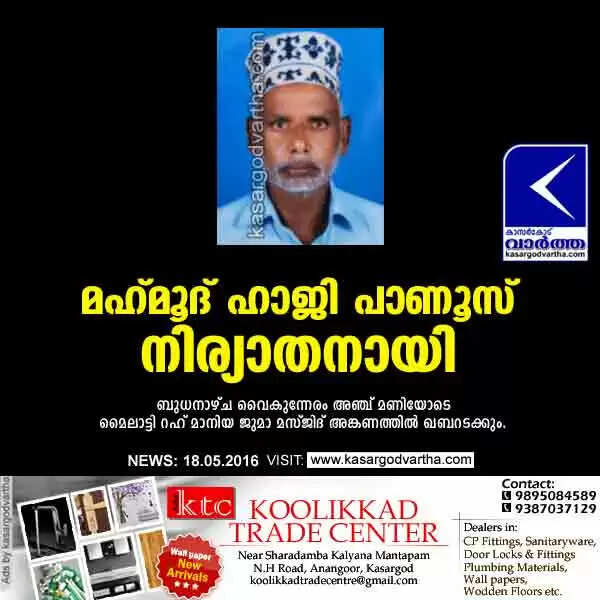 മഹ് മൂദ് ഹാജി പാണൂസ് നിര്യാതനായി
