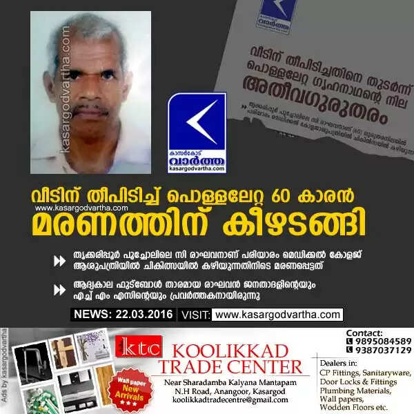 Keywords: Trikaripur, Obituary, Kasaragod, Kerala, Raghavan, Man dies after burning injury