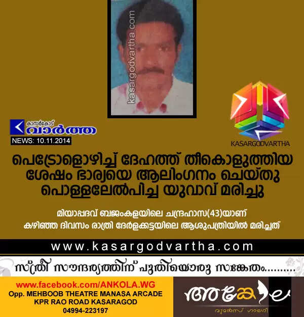 Keywords: Kumbala, Death, Obituary, Fire, Liquor, Kasaragod, Kerala, Man dies after burning injury, Chandrahasa.