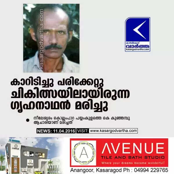 Keywords : Nileshwaram, Car, Accident, Death, Obituary, Kasaragod, Kunjambu Achari.