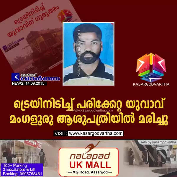 ട്രെയിനിടിച്ച് പരിക്കേറ്റ യുവാവ് മംഗളൂരു ആശുപത്രിയില് മരിച്ചു