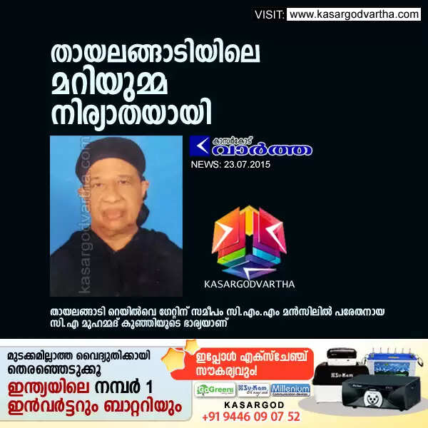 Keywords : Kasaragod, Thayalangadi, Obituary, Kerala, Railway station, Mariyumma.