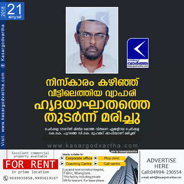 നിസ്കാരം കഴിഞ്ഞ് വീട്ടിലെത്തിയ വ്യാപാരി ഹൃദയാഘാതത്തെ തുടര്ന്ന് മരിച്ചു