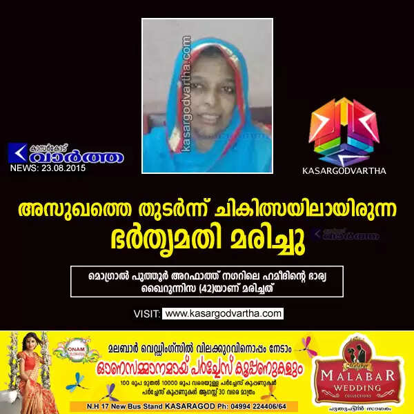 അസുഖത്തെ തുടര്ന്ന് ചികിത്സയിലായിരുന്ന ഭര്തൃമതി മരിച്ചു