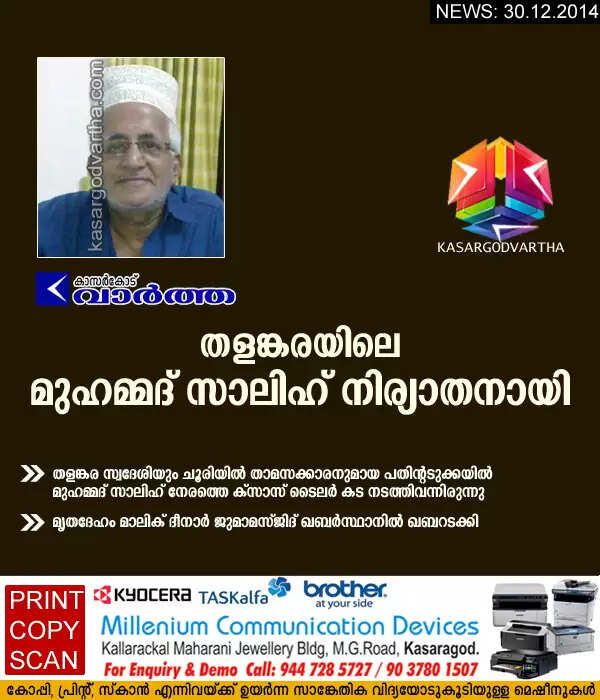 Keywords : Thalangara, Obituary, Kasaragod, Kerala, Muhammed Salih.