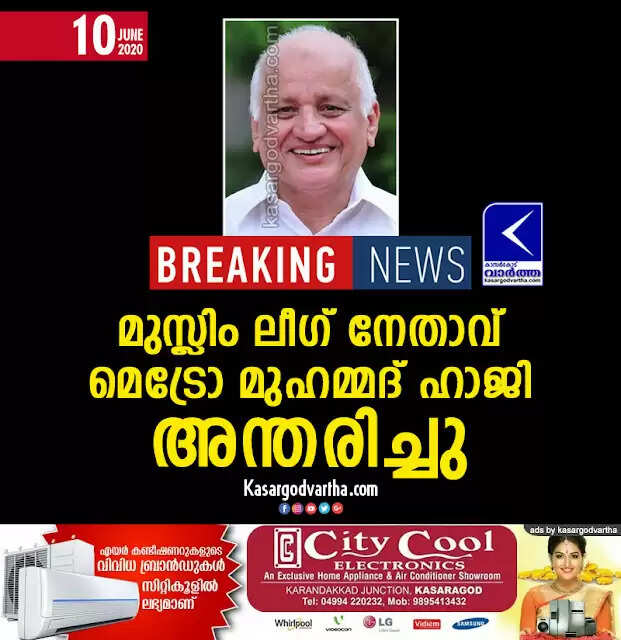 Keywords: Kasaragod, Kerala, news, Top-Headlines, Death, Obituary, Kanhangad, Muslim League Leader Metro Mohammed Haji passes away