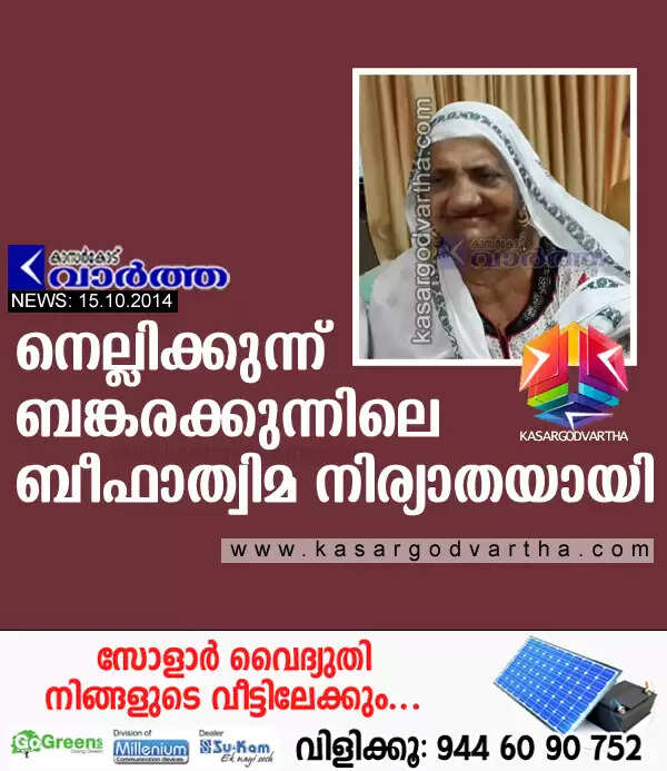 നെല്ലിക്കുന്ന് ബങ്കരക്കുന്നിലെ ബീഫാത്വിമ നിര്യാതയായി