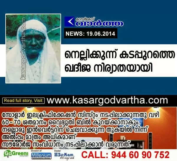 നെല്ലിക്കുന്ന് കടപ്പുറത്തെ ഖദീജ നിര്യാതയായി