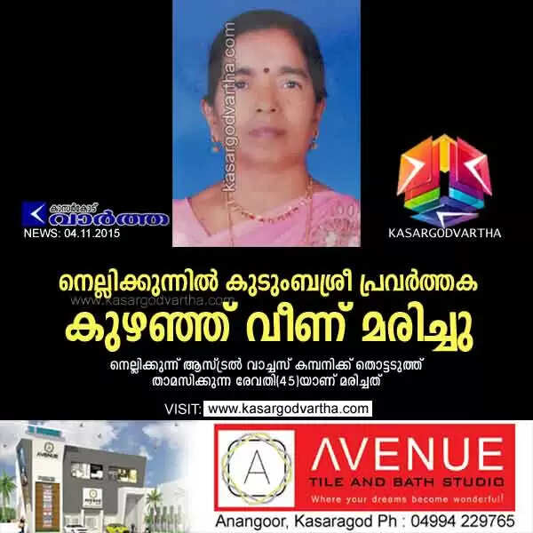 നെല്ലിക്കുന്നില് കുടുംബശ്രീ പ്രവര്ത്തക കുഴഞ്ഞ് വീണ് മരിച്ചു