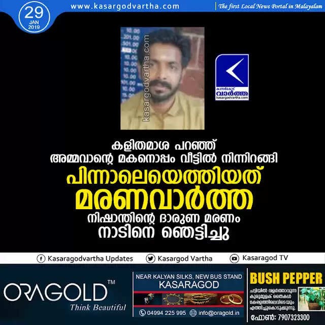 Keywords: Nishanth's death; natives shocked, Kanhangad, Kasaragod, News, Accident, Bike-Accident, Obituary.