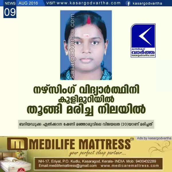 Keywords : Badiyadukka, Nurse, Student, Death, House, Obituary, Vijayalatha, Nursing student found dead hanged.