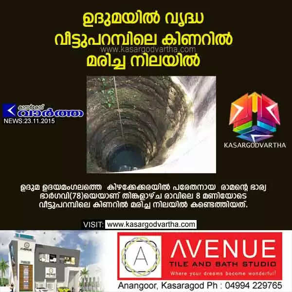 ഉദുമയില് വൃദ്ധ വീട്ടുപറമ്പിലെ കിണറില് മരിച്ച നിലയില്