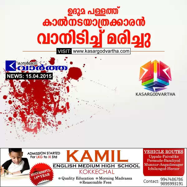 ഉദുമ പള്ളത്ത് കാല്‍നടയാത്രക്കാരന്‍ വാനിടിച്ച് മരിച്ചു