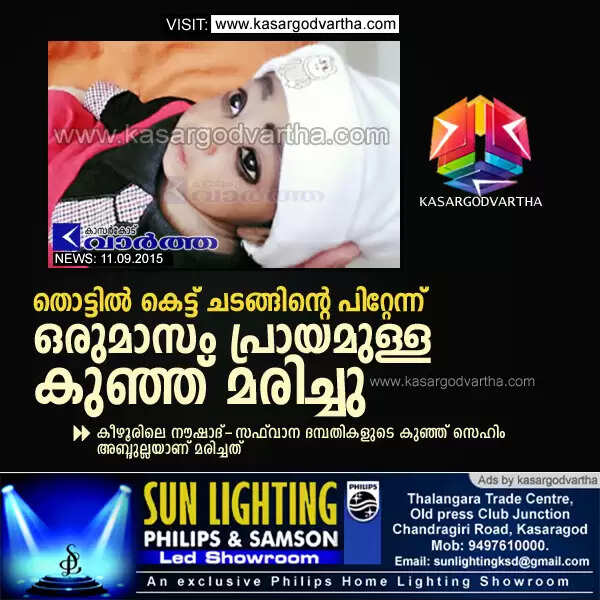 തൊട്ടില് കെട്ട് ചടങ്ങിന്റെ പിറ്റേന്ന് ഒരുമാസം പ്രായമുള്ള കുഞ്ഞ് മരിച്ചു