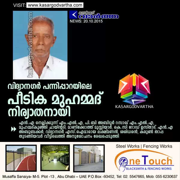 Keywords : Vidya Nagar, Obituary, Kerala, Pannippara, Peedika Muhammed.