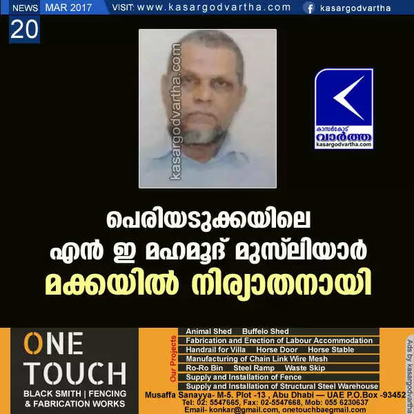 പെരിയടുക്കയിലെ എന് ഇ മഹമൂദ് മുസ്ലിയാര് മക്കയില് നിര്യാതനായി